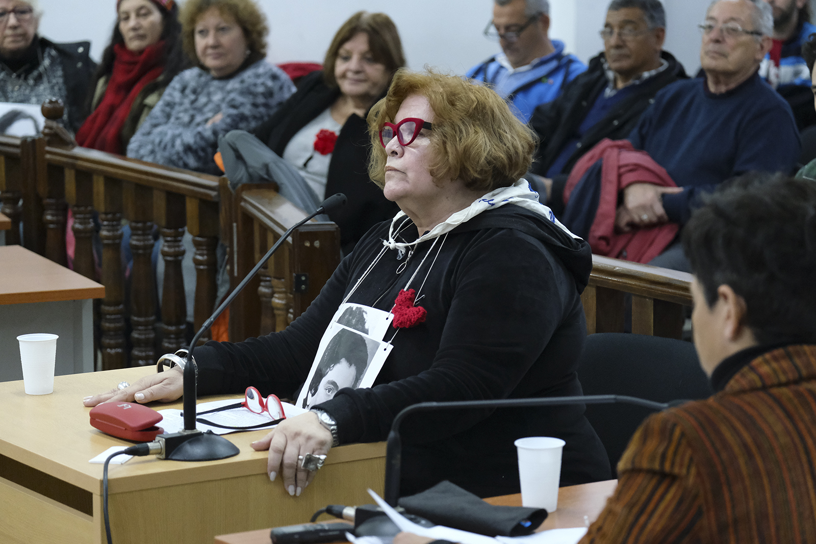 ☝ La primera testigo fue Graciela Galarraga. Declaró por su compañero, Julio César Ramírez, uno de los militantes de Montoneros que fueron secuestrados en el operativo del Batallón de Inteligencia 601 en Lima, Perú. Las otras dos personas secuestradas y desaparecidas en esa secuencia fueron María Inés Raverta y Noemí Gianetti de Molfino.