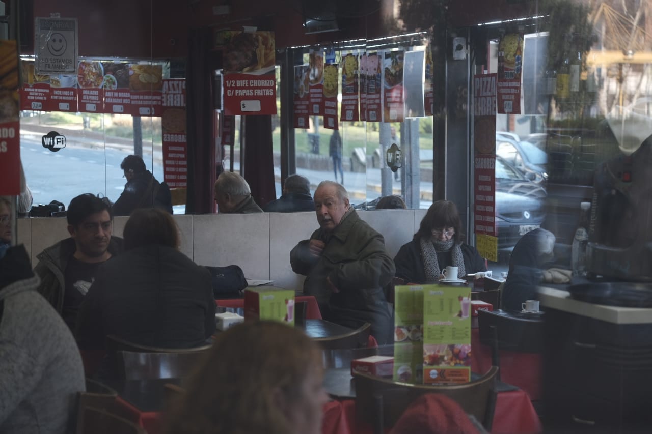 El represor Eduardo Ascheri violó la prisión domiciliaria. Así lo demuestra esta foto tomada por Gustavo Molfino en un bar de San Martín, cerca del Tribunal que lo juzga por delitos de lesa humanidad durante la Contraofensiva Montonera. (Por Martina Noailles y Fernando Tebele para El Diario del Juicio*)