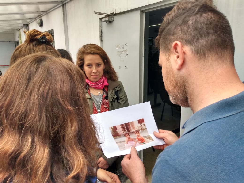 👆 Ana Victoria observa junto a un amigo de la familia, una foto registrada en la Guardería de La Habana. Allí se la ve junto a su hermano Miguel. Quien está observando a Ana Victoria es Yamila Collazo, una de las psicólogas del Centro Ulloa, que acompañana a quienes dan testimonio antes y durante ese momento tan especial.