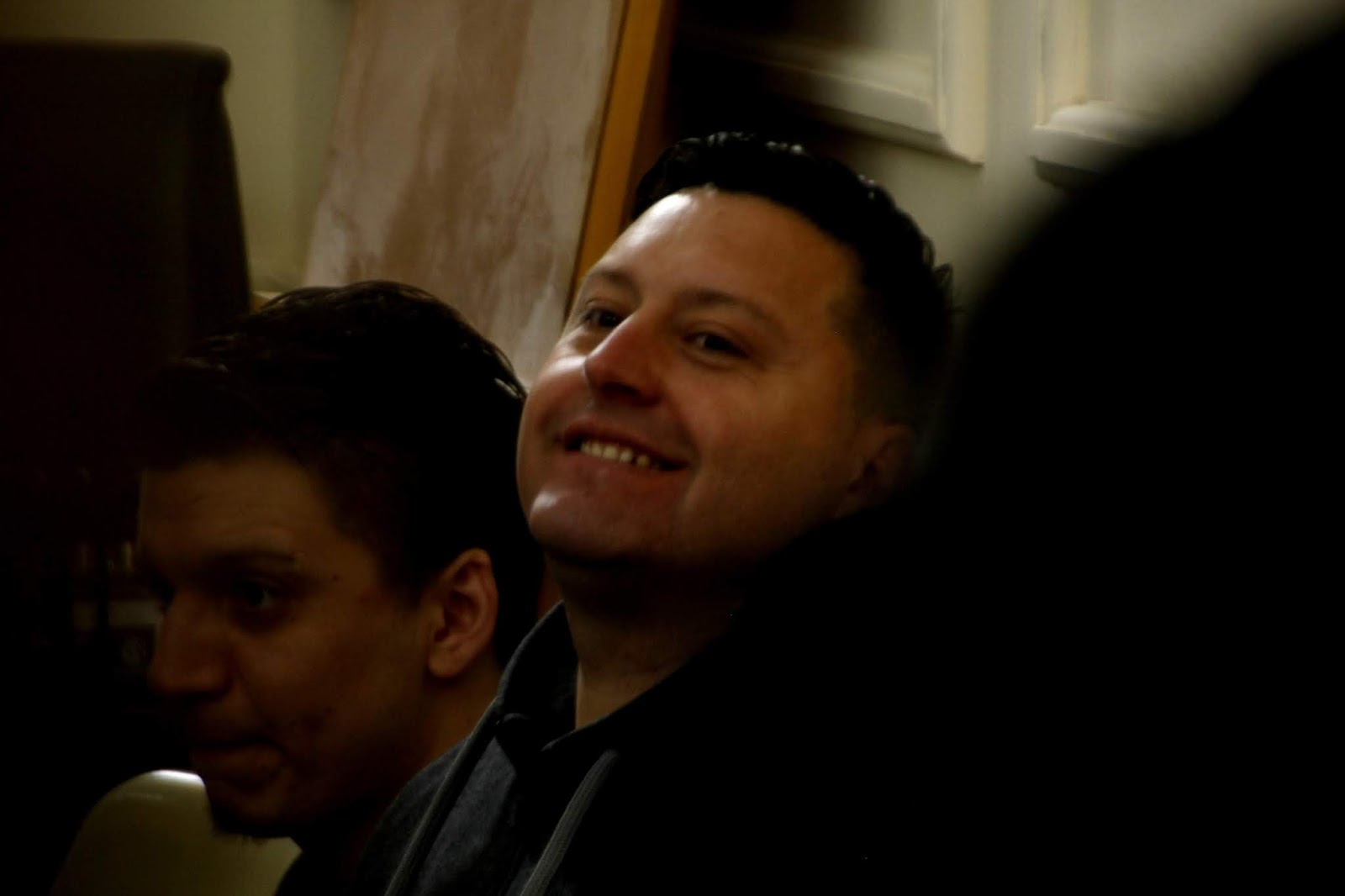Cuando llegó al juzgado esta mañana, Eduardo Hamué repartía sonrisas y saludos. En pago chico es difícil no reconocerse, pero él es un personaje reconocible de la ciudad. Fue cesanteado de la fuerza después de haber tenido un sumario, no por su actuación durante la Masacre de Pergamino (al menos hasta hoy), sino por haber realizado una publicación en su Facebook, después de la masacre, mostrando el tambor cargado de su arma con el mensaje: “Saludos a los DH”, no en referencia a Daniel Hadad sino a los Derechos Humanos. Antes de la Masacre hablaba de sus armas como “mis bebés que me protegen de las lacras” (los posteos acompañan esta crónica). Hamué fue uno de los promotores de las marchas que se realizaron a favor de los policías acusados en esta causa. Bajó del auto con paso seguro, grandote como es, con su campera verde todavía puesta. Pero ahora que está ante el tribunal su actitud ha cambiado por completo.