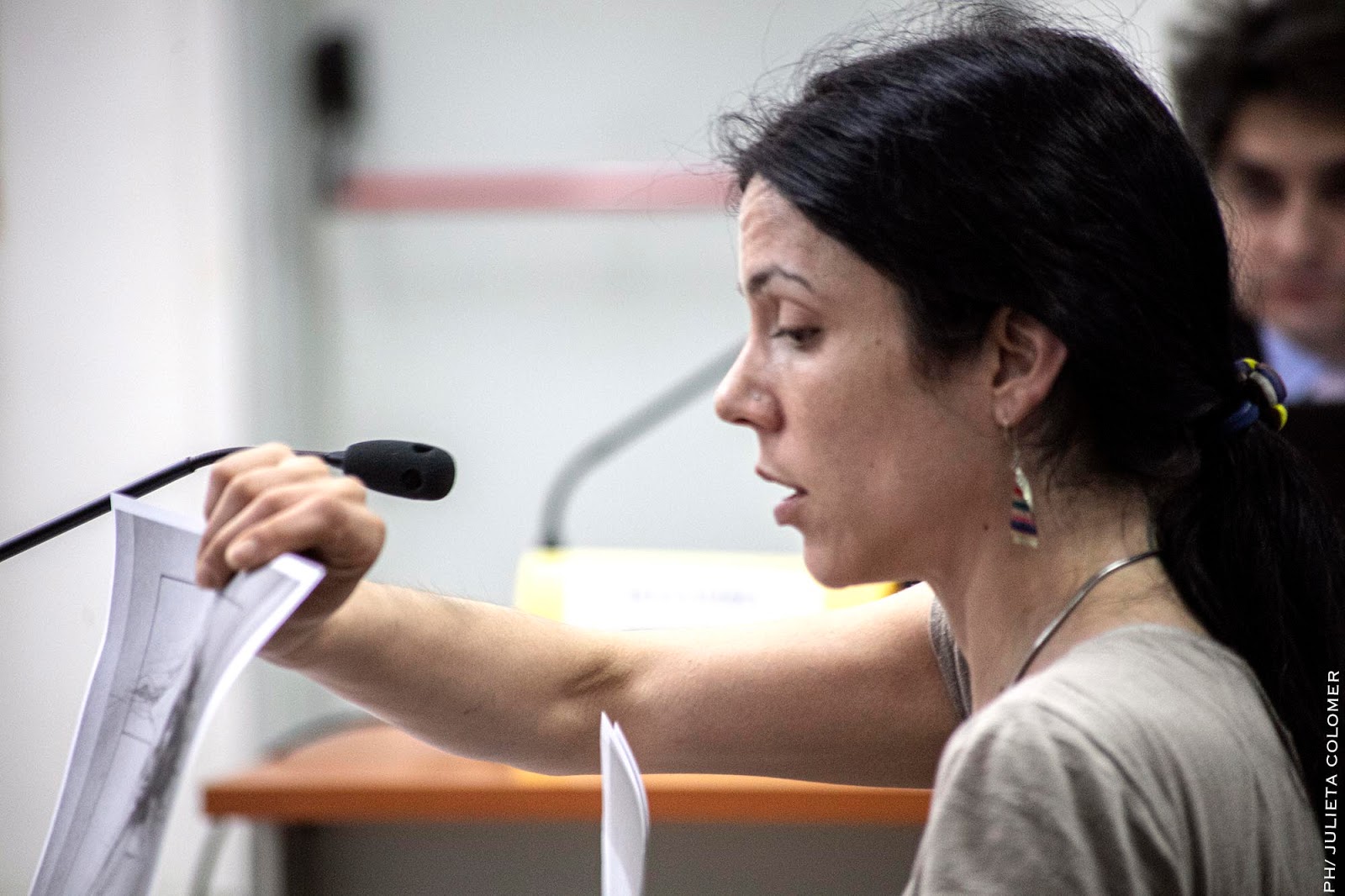 👆 Luli, como le dicen, mostró dibujos de su padre. No sólo por el valor de traer su sensibilidad a la escena del juicio, sino también porque a su madre, mientras estuvo desaparecida en Campo de Mayo, le decían: «qué linda letra tiene su marido, qué bien dibuja», lo que demuestra que él también estaba secuestrado, aunque luego simularían un suicidio en un supuesto ingreso al país en ómnibus.