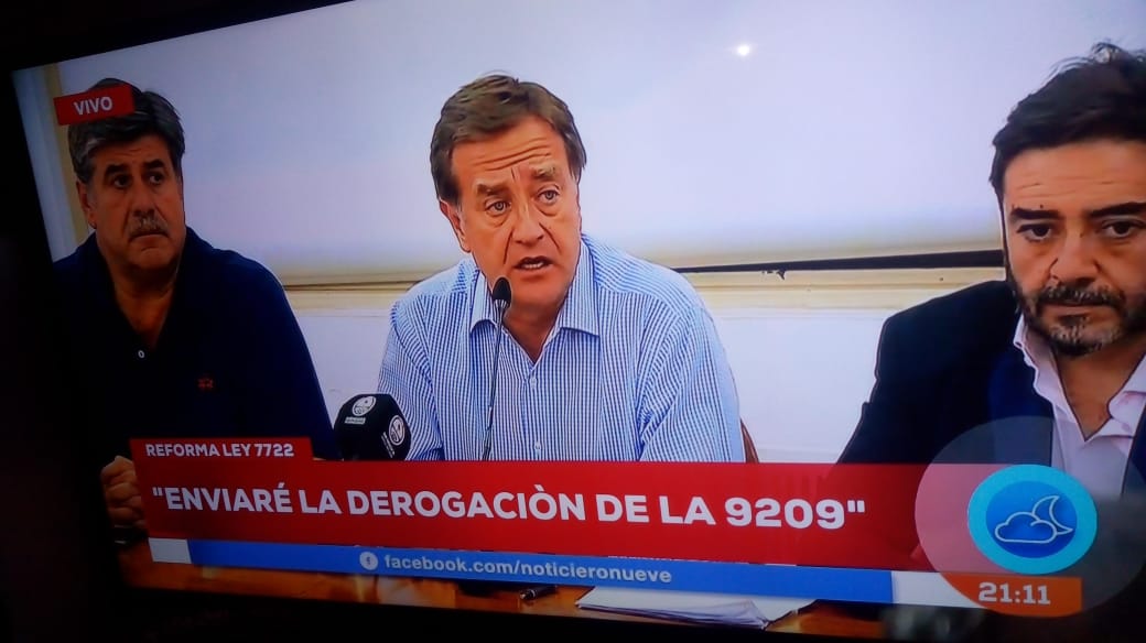 El gobernador de Mendoza, Rodolfo Suárez, anunció este viernes, después de las 21, que enviará a la legislatura el próximo lunes un proyecto para derogar la ley 9209 y dejar «en plena vigencia la ley 7722». (Por La Retaguardia)
