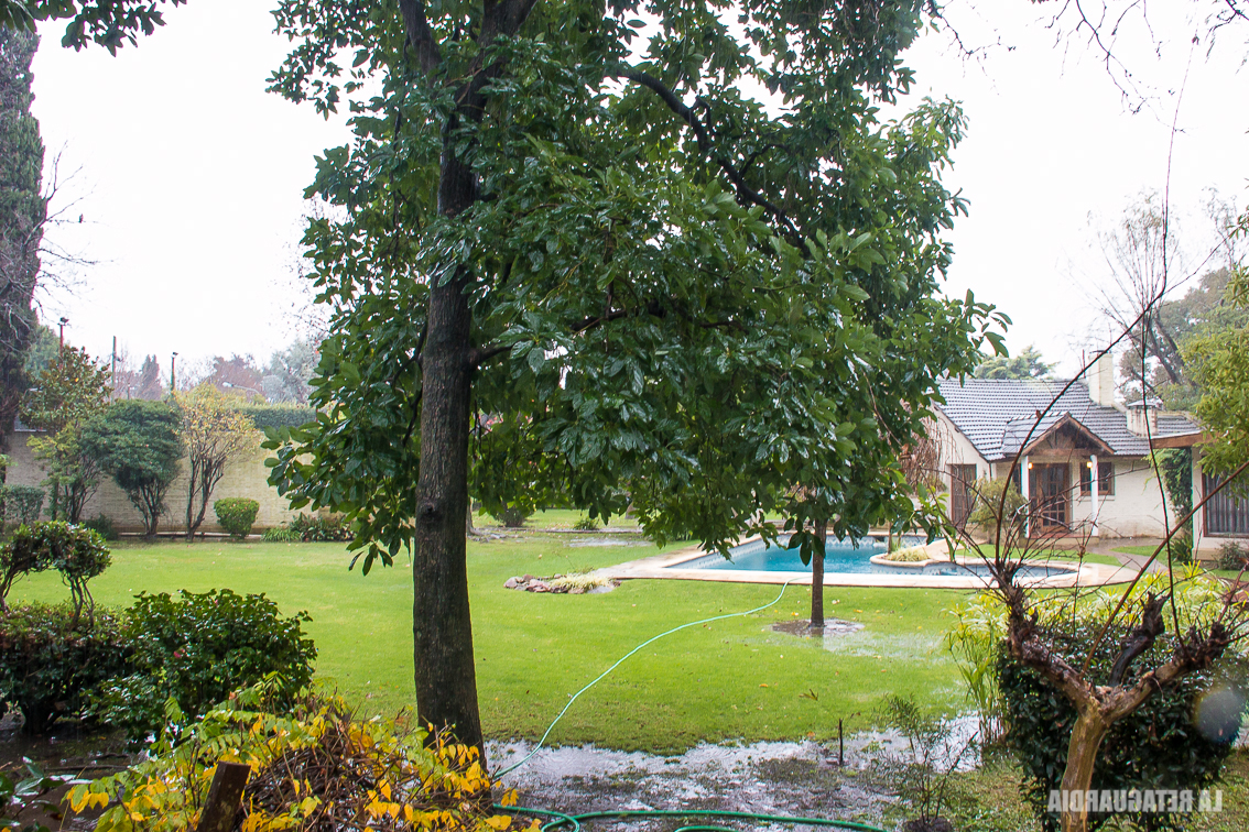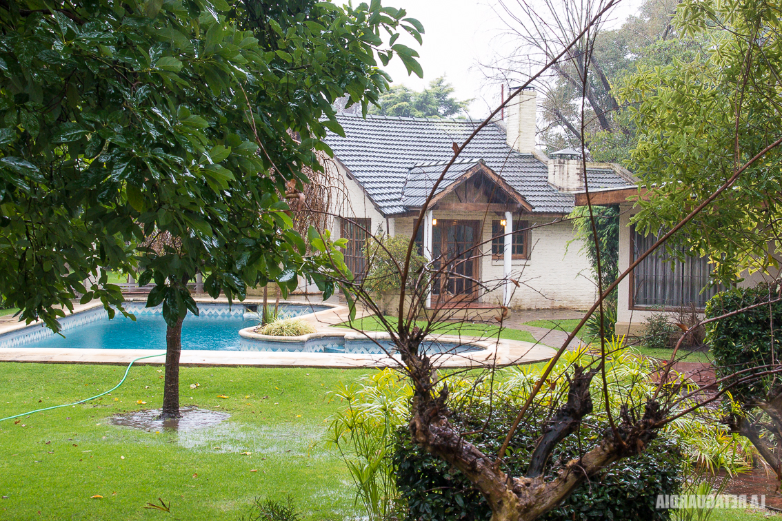 No nos cuesta mucho hallar la dirección exacta. Aunque esta vez sí es imprescindible el GPS. Según los testigos, el lugar está irreconocible, no por la casa, de lo poco que permanece con pocas alteraciones, sino por la construcción de un barrio donde antes había sólo campo. Nos apostamos frente a la reja de la entrada. Mientras Natalia Bernades toma fotografías cuidando que el aguacero no dañe su equipo fotográfico, La Bety y El Sueco dialogan. Coinciden en que la casa que está más cerca de esa entrada no existía en aquella época. Es un quincho, sabríamos después, pero eso les genera confusión. Reconocen la pileta y la casa principal, que está a su lado pero no en paralelo con la piscina. Necesitan más. Buscan algún dato inconfundible. Los perdemos de vista. Ambos, junto a Carlos Loza, van caminando por Lugones hacia la ruta. De repente escuchamos un grito efusivo, casi de gol. Mientras corremos hacia ellos, Carlos Lordkipanidse está saltando como un niño. Señala hacia adentro de la casa: