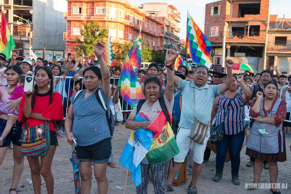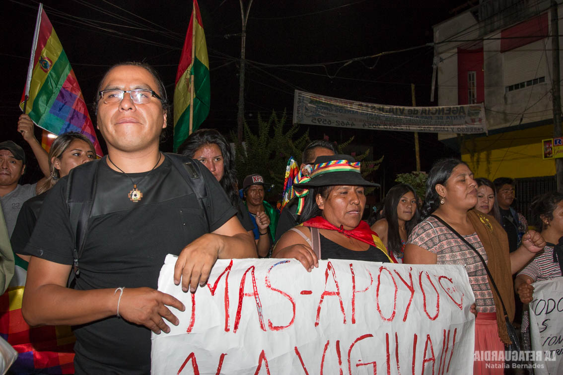 Es el turno de Arminda, de Cochabamba. Denuncia que en la marcha pacífica contra el golpe fueron reprimidas con gases lacrimógenos y atacados por motoqueros. Afirma que “hay más de seiscientos detenidos pero no hay prensa que lo comunique”. Prima López, referente de Villazón, toma la posta: ”Nuestro hermano Presidente Evo Morales nos ha devuelto la dignidad. Eso quiero que sean conscientes todos los que viven en Argentina para decir basta a los vendepatrias”.