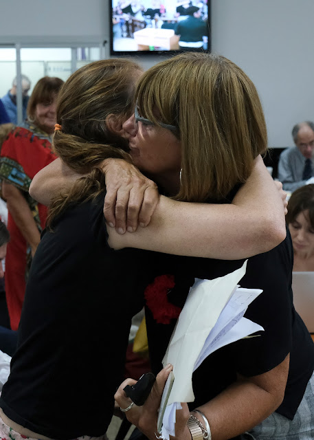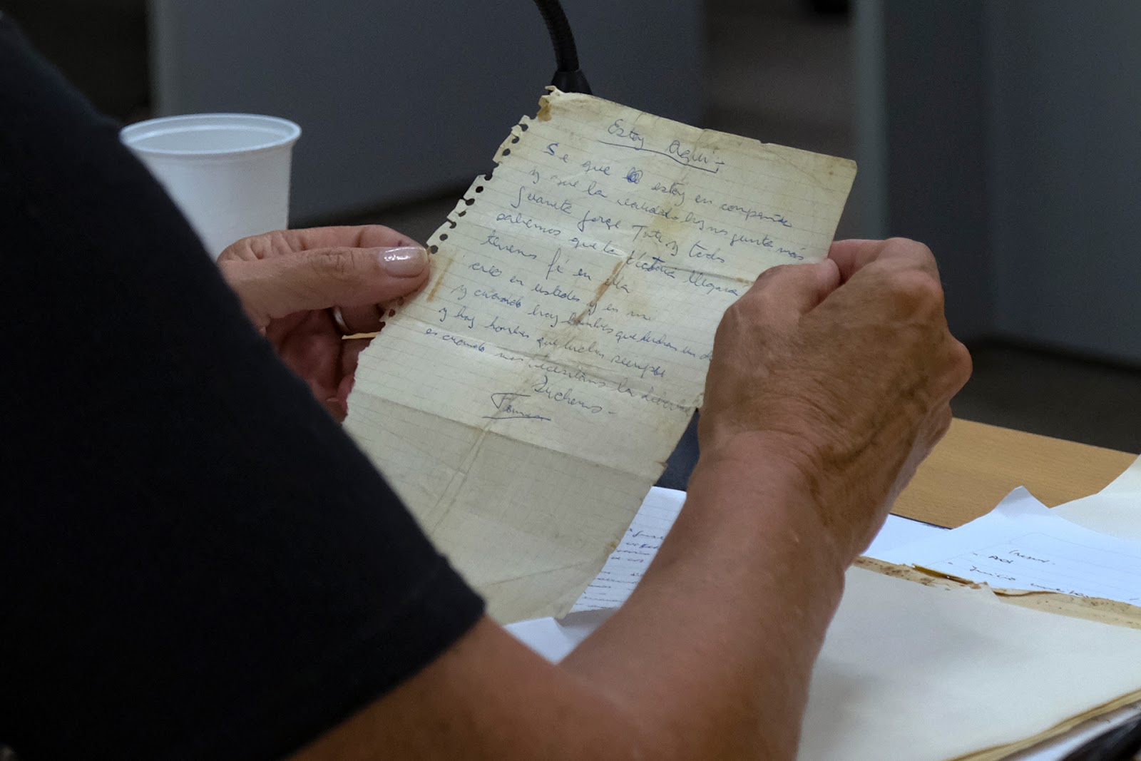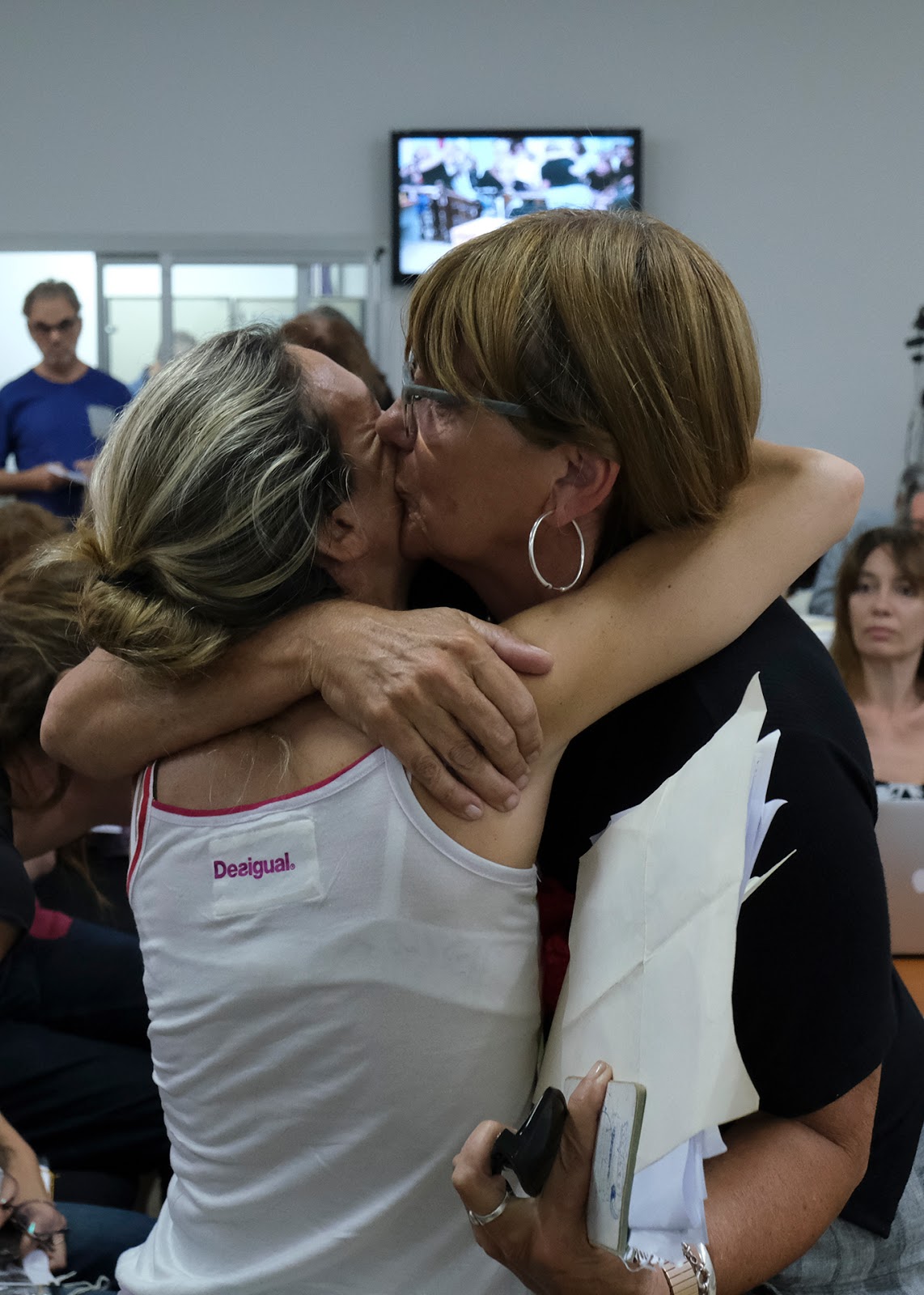 Ha pasado una hora del testimonio de Adela Segarra. Ha recordado nombres, apodos, alegrías y tristezas. Es evidente que viene el final cuando Pablo Llonto, abogado querellante, le pide si puede leer una carta que Adela tiene sobre la mesa. Es de Ángel Servando Benítez. A sus espaldas, María Sol, la hija de aquel militante al que conocían como Fermín, está por desbordar emoción desde sus ojos gigantes.