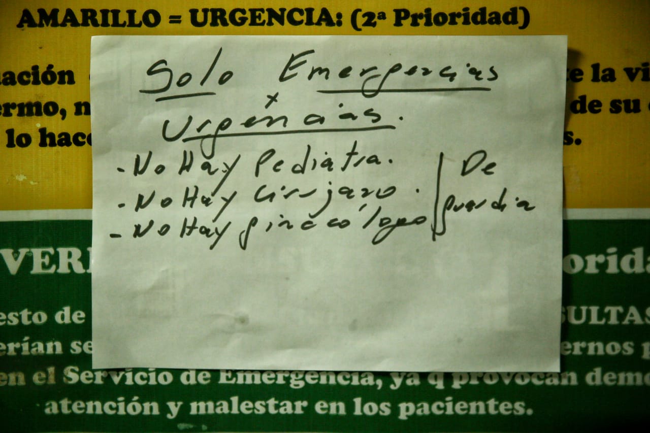 | Cartel pegado en el Hospital de Embarcación, el único que recibe a las 33 comunidades de la zona, que cuenta con una sola ambulancia para asistirles. (Foto: Rodrigo Caballero/La Garganta Poderosa) |