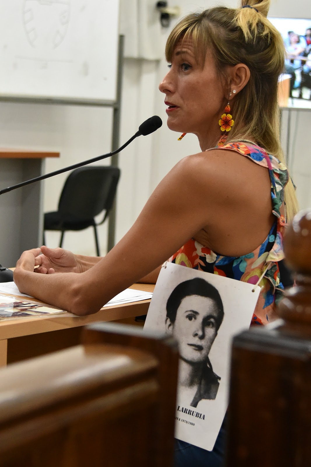 “Mi historia es compleja como tantas historias que me imagino han escuchado en este tribunal, basada en mucho relato, en un entramado de idas y vueltas en el tiempo, en diálogo permanente en esta construcción entre presente y pasado con diversas miradas de mi historia; en búsquedas, algunas fértiles otras truncas. Este largo camino me ha llevado hasta aquí”, dice con tono firme, seguro y amable. De arranque queda en evidencia que su historia es difícil -también- de contar. “Mi nombre es Selva María Varela Istueta. Soy hija biológica de Mario Anibal Bardi y Claudia Istueta, ambos eran médicos, militantes montoneros de zona sur del área de sanidad. Fueron detenidos desaparecidos en el año 1977 en oportunidades diferentes: primero mi papá, en enero; luego mi mamá, en noviembre. Para esa época yo tenía un año de edad”. Es tan compleja la historia de Selva que no está allí para hablar de sus padres biológicos, sino de quienes considera su papá y su mamá: Carlos Karis y Nora Larrubia, integrantes de Montoneros desaparecidos durante la Contraofensiva. Entonces habla de ambos. “Carlos Karis era oriundo de Miramar. Él se había instalado en la ciudad de La Plata para estudiar medicina. Nora Alicia Larrubia había nacido en Río Cuarto, Córdoba. Su padre era suboficial del Ejército del área de comunicaciones, y había sido trasladado muchas veces por su trabajo. Nora nació allí y después de varias ciudades a las que son trasladadas, en el año ‘62 se instalan en la ciudad de La Plata. En el ‘68 Nora empieza la carrera de medicina; Carlos y Nora cursan juntos, se hacen muy amigos y empiezan su militancia en la Juventud Universitaria Peronista (JUP). Luego se constituyen como pareja y, por su militancia, empiezan a ser referentes importantes de la zona, junto a Susana Larrubia, que es hermana de la Nora”, reconstruye Selva. “¿Cómo se vincula ahí con el caso de mi mamá?”, pregunta para darse pie aclaratorio. Elabora la respuesta con calma y fluidez. “Según testimonios de Daniel Karis, que es el primo de Carlos, con quien yo tuve varios encuentros cuando fui más grande y que va a testificar en este tribunal (dará un escueto testimonio más tarde), la casa donde vivía Karis en agosto de 1977 fue allanada. Se llevaron algunas cámaras de fotografía y otros objetos. Por eso Carlos y Nora deciden irse de La Plata y son trasladados por la organización directamente a la zona sur (del Gran Buenos Aires). Ahí aparece el vínculo con mi mamá, que era responsable del área de sanidad de la Columna Sur de Montoneros. Comienzan a militar juntos”.