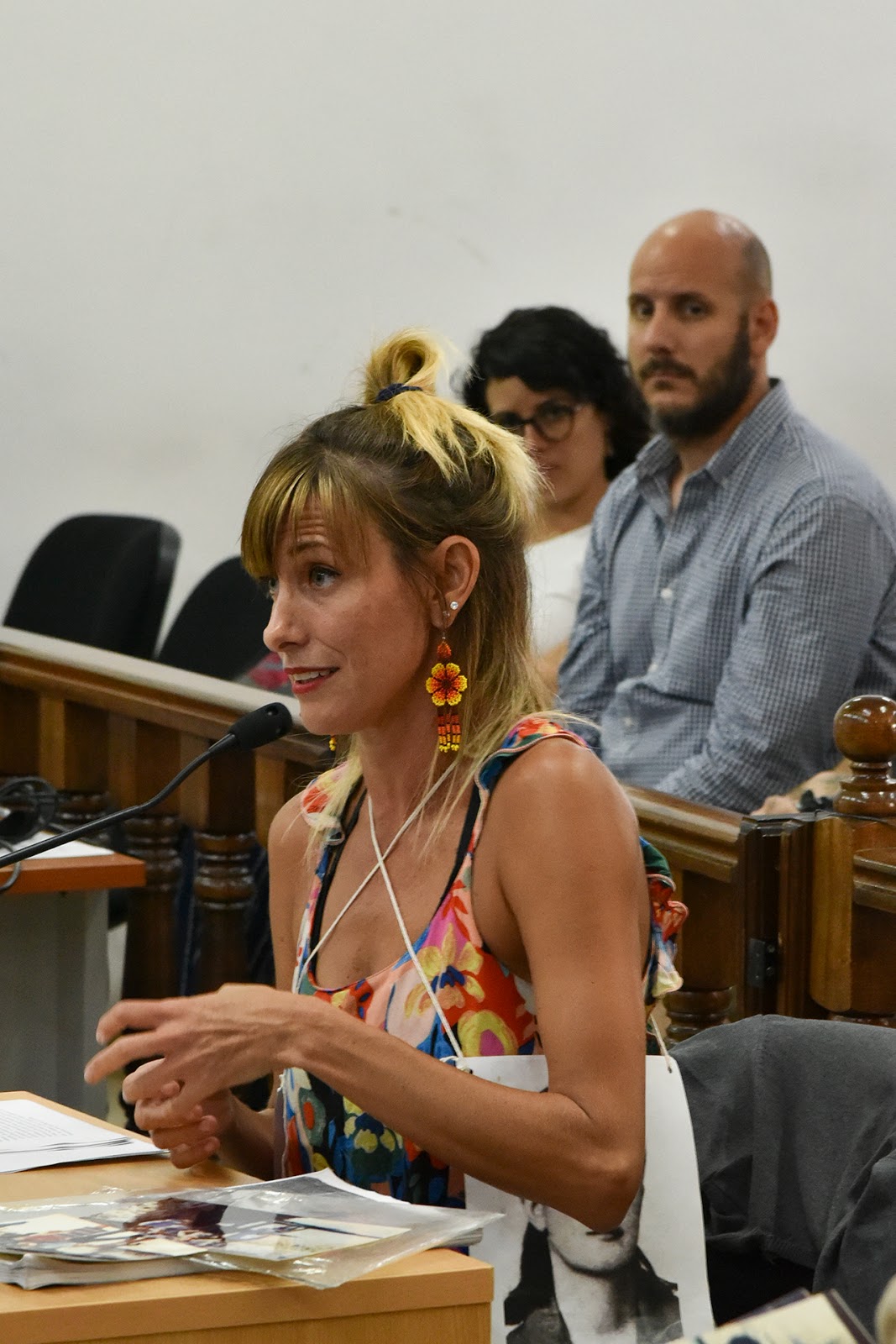 La última testigo fue Ana Claudia Adur. La sobrina del cura Jorge Adur (muy nombrado en el juicio pero a la vez este fue el primer testimonio de un familiar suyo). Más allá del aporte personal que dio acerca de lo que implicó la figura de su tío, puso su teléfono al micrófono y durante 25′ se escuchó su voz en un extenso mensaje. Se definió «parado del otro lado de la complicidad histórica imperdonable», en referencia al rol de la Iglesia Católica durante el genocidio. Gustavo Molfino/El Diario del Juicio |