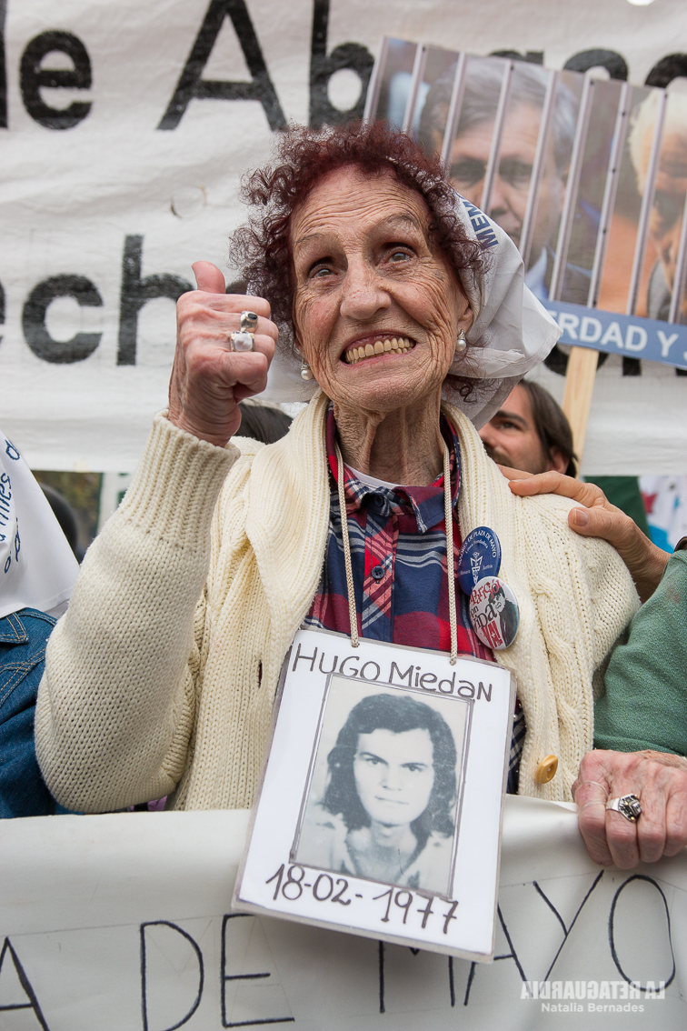 «Los juicios me parecen mal, ¿sabés por qué? Yo pude declarar, por suerte. Bah, por suerte es una forma de decir. Pude declarar y pude llevar a declarar a mis hijas. Porque en casa ha sido terrorífico todo lo que hicieron con mis dos hijas y conmigo, aparte de haberse llevado a mi hijo. Pero los genocidas siguen sueltos. Quisiera que alguien me dijera cuántos genocidas hay detenidos. Y si hay algunos detenidos, alguien sale diciendo que habría que dar vuelta la página y habría que empezar a… no sé si habrá querido decir perdonar, pero a olvidar un poco. Pero ninguna de nosotras vamos a olvidar nunca jamás porque se han llevado a un hijo. Nosotras tenemos que estar siempre recordando a nuestros hijos, siempre atrás de nuestros hijos. Ellos están adelante, ellos son los que nos ayudan a seguir, a hablar, a hacer cosas que tenemos que hacer. Por ellos tenemos que seguir reclamando hasta que no tengamos más palabras para decir y no podamos hablar. No debemos olvidar nunca a nuestros desaparecidos. No como quisieron decir, que era 2.000 3.000: son 30.000. Y si no son 30.000, son 29.300. Pero son muchos los desaparecidos”, expresó Espen.