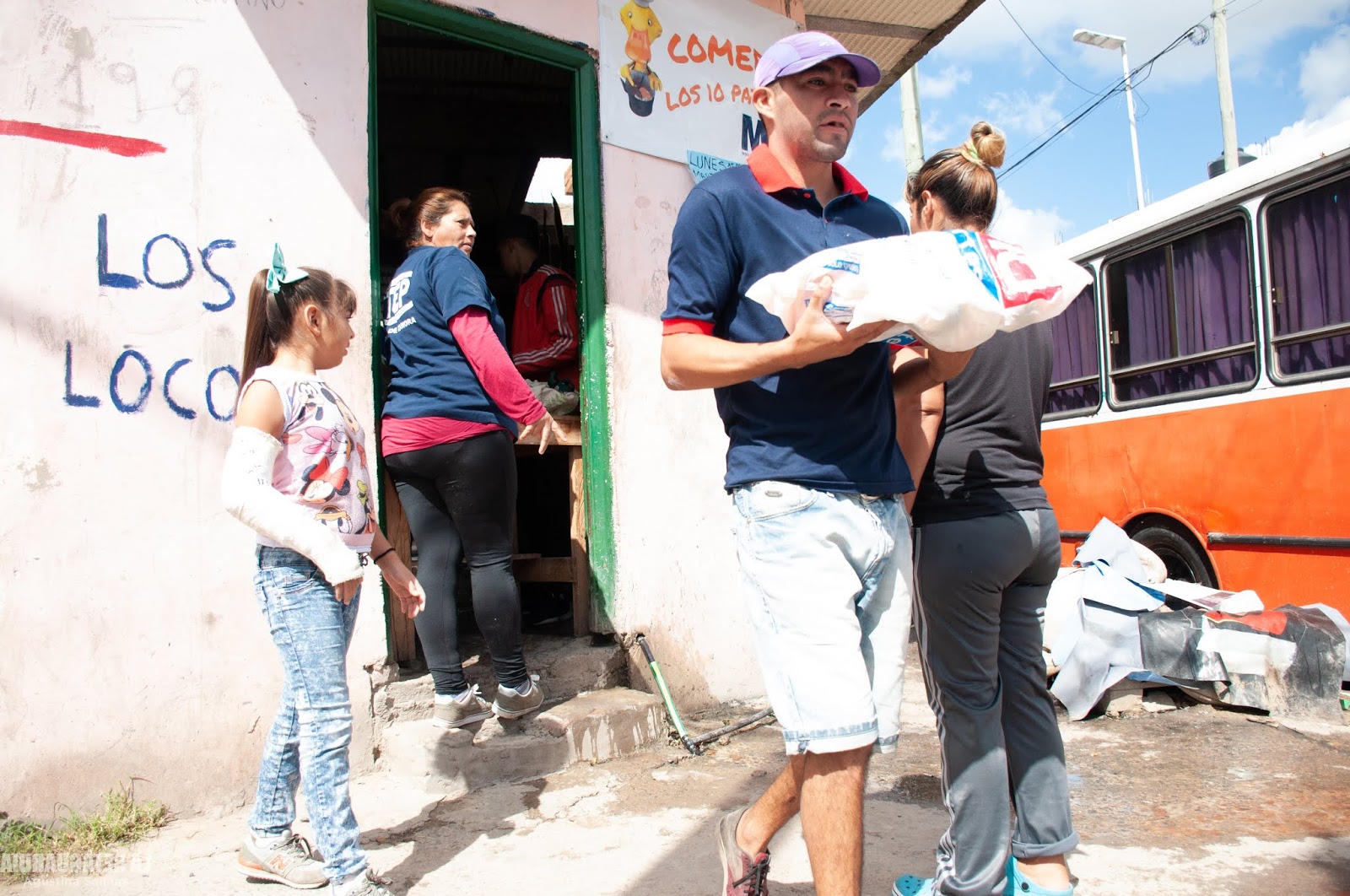 “Acá hay de todo: gatos, perros, un chancho, mis hijos…”, dice entre risas Patricia Iñiguez, referente del MTE (Movimiento de Trabajadores Excluidos), mientras nos invita a entrar a su casa, transformada en el comedor popular 10 Patitos para que sus vecinas y vecinos de Fiorito accedan a su vianda de comida. En distintos barrios del Gran Buenos Aires, donde los balcones no existen, y no se aplaude a las 21 horas ni se puede cumplir el encierro, la rutina no cambió demasiado. Quienes sobreviven con changas, con cartoneo, con la comida justa para el día, no pueden hacer cuarentena por un hecho vital: tienen que salir a buscar el mango para comer. A las 10 de la mañana, los vecinos y vecinas acercan las bolsas con tuppers que se amontonan en la cocina de la casa. En Fiorito, el comedor funcionaba tres veces por semana y desde el decreto de aislamiento social obligatorio se fusionó con el Centro De Día Uniendo Fuerzas y extendieron a 5 los días para repartir comida.