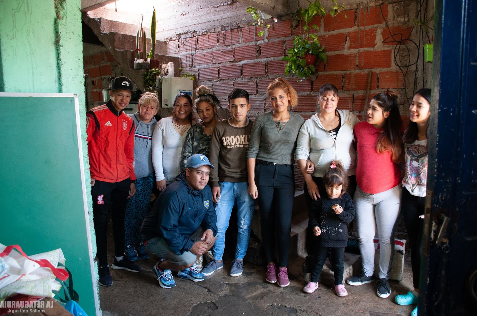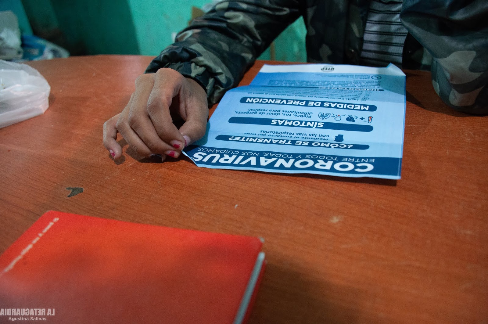 Sí, en la casa de Pato hay gatos, gatitos bebés y perros durmiendo, caminando por la casa y en la terraza vive el chancho. Se lo regalaron hace un año: “mi hijo lo hace dormir, le gustan las caricias”, dice. El chancho se asoma cuando nos escucha y se para en dos patas para que lo acariciemos. Patricia vive con sus 6 hijos y con Tamara, referente del Barrial Uniendo Fuerzas Vientos de Libertad-MTE, en el que es la única mujer. También habitan la casa sus nietas y nietos; el último nació hace una semana. Toda la familia aporta sus manos en el comedor para que la porción de comida les llegue a las 60 familias, o a veces a más, porque algunas instituciones de la zona donde se repartían viandas cerraron sus puertas. La familia pone a disposición su casa para dar a las familias del barrio la que quizás sea la única comida del día. Tanto Patricia como sus hijas e hijos cocinan con los insumos que les destinan desde el Ministerio de Desarrollo Social. Allí también aportan los pibes que trabajan en el Barrido del barrio, pero para no estar expuestos en la calle colaboran cocinando y sirviendo la comida. En la mesa hay una pila de folletos informativos sobre los cuidados y prevenciones contra el coronavirus para que repartan en el vecindario quienes hacen lo que pueden con los pocos recursos que tienen. Fiorito es un barrio que carece de servicios básicos: no hay cloacas ni agua potable; junto al hacinamiento, esas condiciones de vida preexistentes a la pandemia potencian el riesgo de contagio. En el comedor respetan las distancias entre personas. A las 13 horas, se van acercando para retirar su vianda desde la puerta y evitan que se generen aglomeraciones. Hoy tocó arroz con salsa y carne, mañana no sabremos si alcanzarán las porciones cocinadas, o si habrá que reforzar con algo más. La única certeza en ese lugar es que Patricia se encargará de que ningún pibe se quede sin comer.