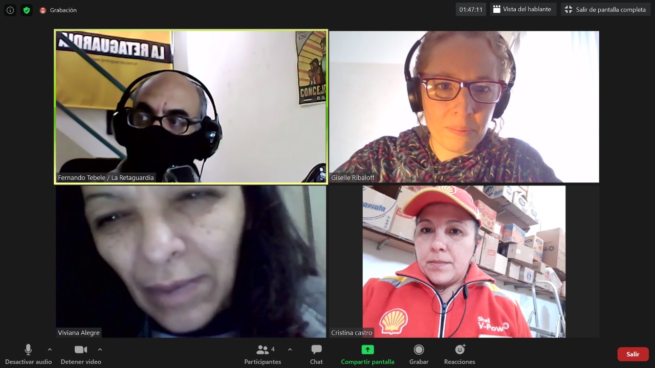 Al comienzo de la charla ella todavía no estaba. Entre su trabajo y los llamados uno detrás de otro, no había podido sumarse. Pero mientras Mónica y Norita dialogaban vía telefónica, sin que ellas pudieran advertirlo, se sumaba a la virtualidad con imagen Cristina Castro. Guarecida en una de las oficinas de la estación de servicio en la que trabaja, con su ropa laboral calzada, se tomó unos minutos para aceptar la invitación a recibir los abrazos a la distancia, que sólo ellas se pueden dar entre sí. Cristina contó que, debajo de esa madre súperpoderosa que sale en los medios de comunicación, también hay una mujer que permite aflojarse, por la desaparición de su hijo Facundo: “Estamos juntando energía y pilas con la familia. Este es mi refugio. Paso más tiempo aquí que en mi casa. Y me he sacado el poncho de mamá y me he dejado caer. Me he permitido llorar. Hoy, terminando el día y sabiendo que no tengo que volver a trabajar, me volveré a poner ese poncho para salir a pelear de nuevo. Tengo la herencia de las Abuelas, las Madres y cada una de las mamás que están ahí atrás. Entre todas somos muchas. Nos vamos a sostener unas a las otras y no vamos a dejar de pelear. Somos laburantes. Las laburantes, plata y miedo no tenemos. La vamos a pelear hasta lo último, hasta la verdad. Hasta que los culpables estén tras las rejas. Los que se callaron y los encubridores son tan desaparecedores como los que se llevaron a Facundo. Merecen la misma pena”, afirmó Cristina.