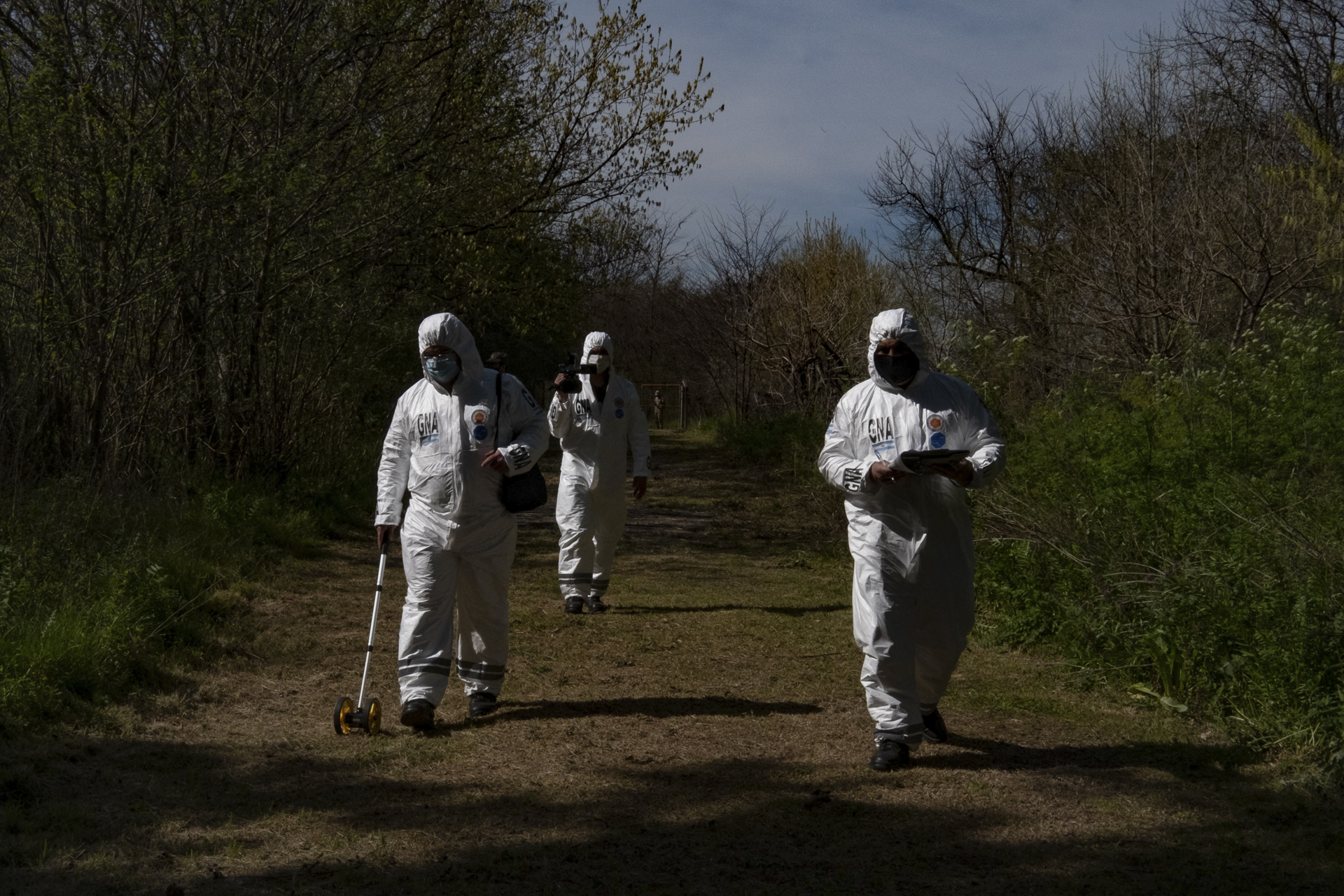 | 👆 Peritos de Gendarmería fueron convocados sobre todo para medir distancias que contribuyeran a verificar los testimonios. Se movilizaron en un camión y vistieron trajes blanco de protección de pies a cabeza. Además, registraron fílmicamente su trabajo. 📷 Gustavo Molfino/El Diario del Juicio |
