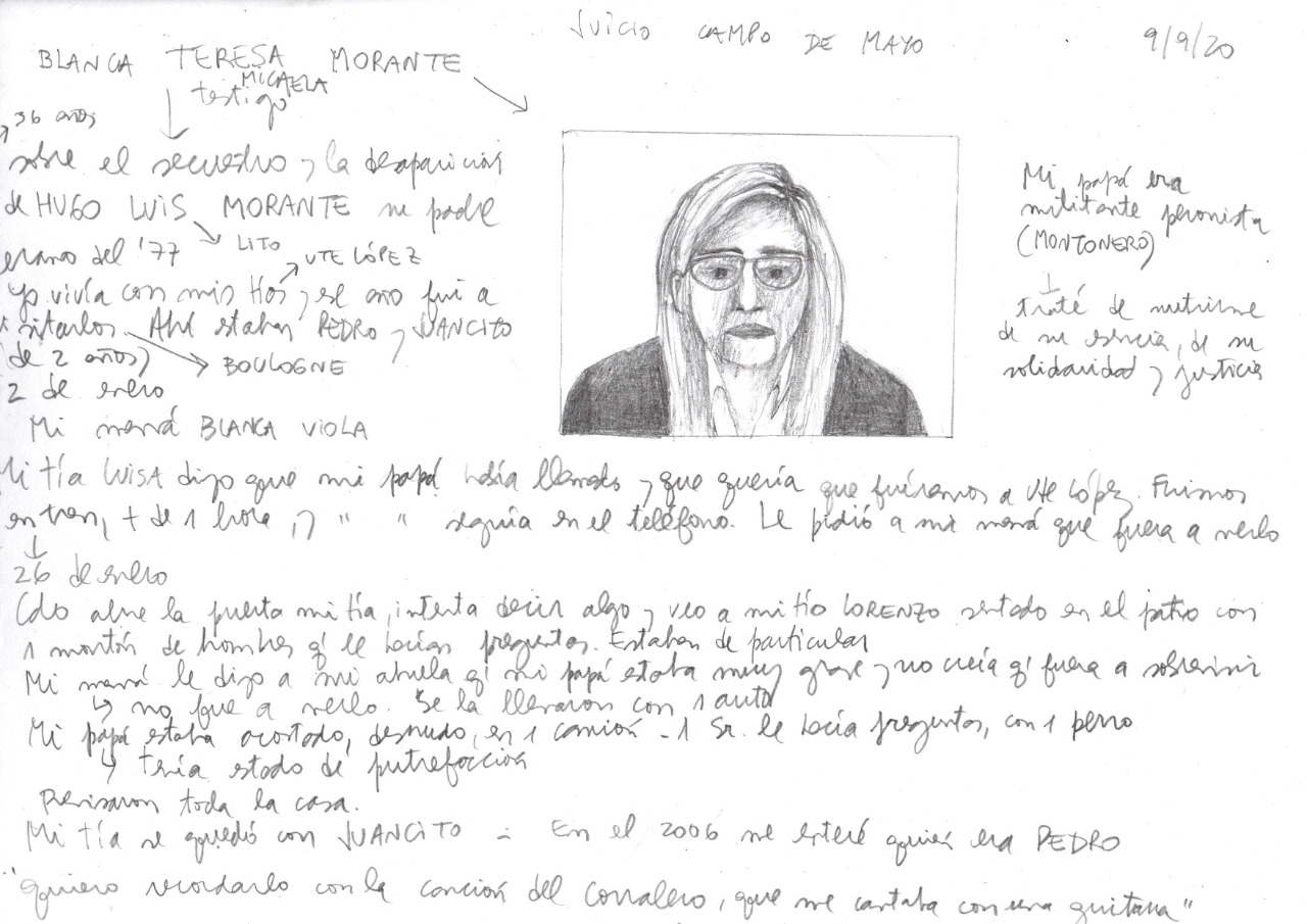 También declaró en la audiencia Blanca Morante, hija de Hugo Luis Morante. Blanca contó qué sucedió a partir de que Pedro, como ella conocía a Raúl Rossini, le dejó a su familia el cuidado y la protección de Juan Martín, “Juancito”. El 12 de enero, Morante no regresó de trabajar. Ya había sido detenido. Algunos días después recibieron un llamado de Hugo. La casa de Blanca se llenó de gente. Estaban preparando la emboscada para Rossini. Uno de esos días, llevaron a la mamá de Blanca a ver a Hugo. “Estaba totalmente desnudo, en un camión cerrado, siendo torturado por un hombre con un perro. Tenía heridas en estado de putrefacción y olía a podrido”. A la mujer le preguntaron por Pedro. Ella les dijo que no lo veía casi nunca y no sabía dónde estaba. Cuando regresaron, se instalaron definitivamente a esperarlo. La tía de Blanca, Luisa, tenía órdenes de ser solo ella quien atendiera el teléfono y abriera la puerta. “Cuando llamó Pedro la obligaron a que le dijera que Juancito estaba enfermo. Así lo hizo”. Cuando Rossini llegó a la casa fue secuestrado. “No supe más nada ni de mi papá ni de Pedro”, atestiguó Blanca. Ella también estuvo reunida con Scarpati. Le contó que su papá había estado con él en Campo de Mayo y fue, junto a  Rossini, quien lo ayudó a sanar sus heridas. La testigo no preguntó más. No quiso saber los detalles de la vida en cautiverio de su padre.