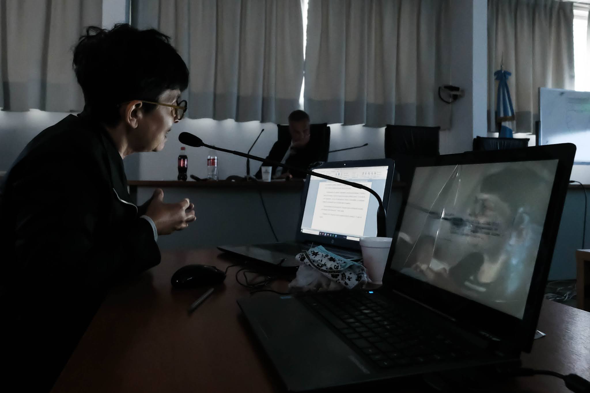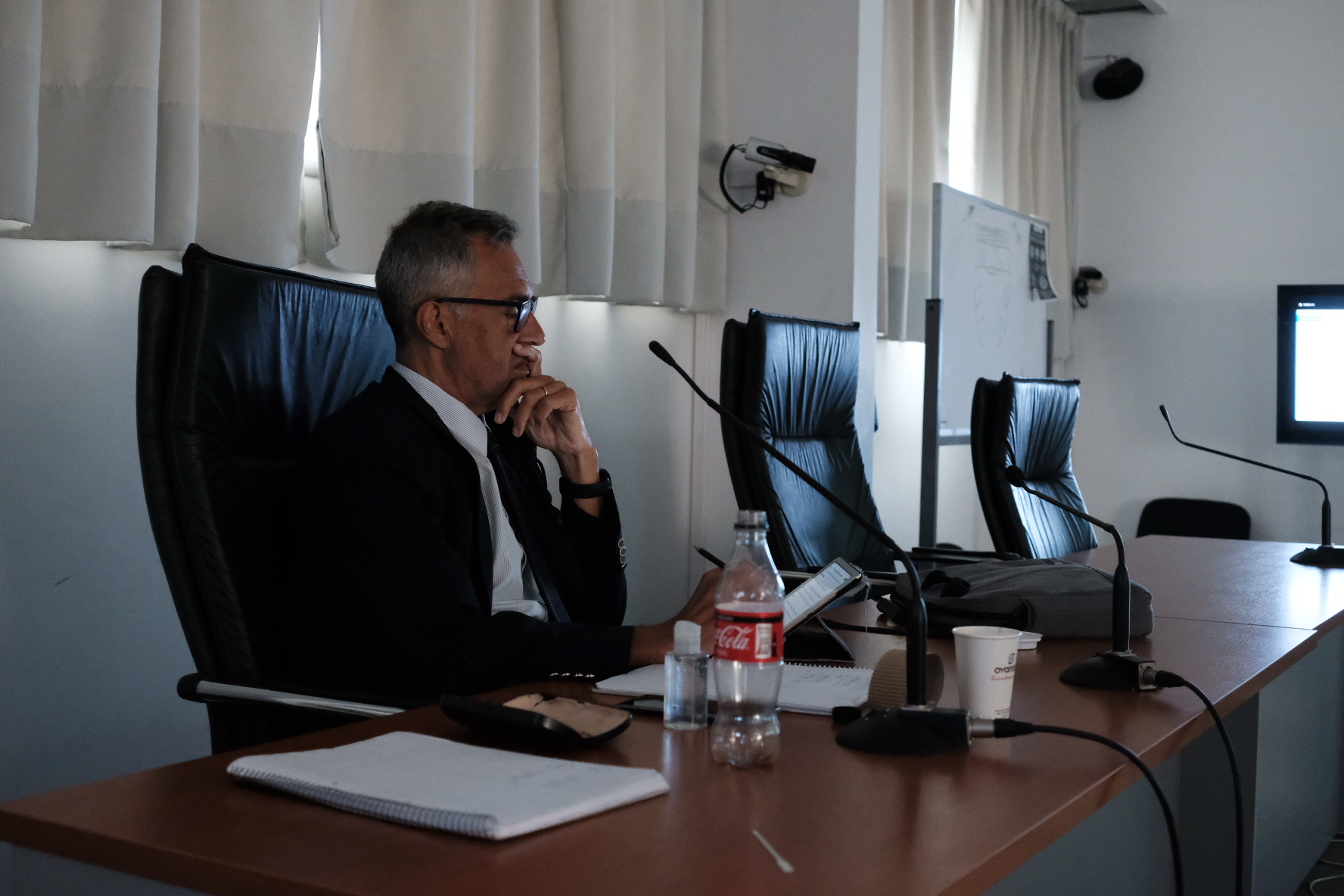 ☝ El presidente del tribunal, Esteban Rodríguez Eggers fue el único integrante en la sala de audiencias. La jueza Morgese Martín y el juez Mancini utilizaron la plataforma virtual, como el resto de las partes.