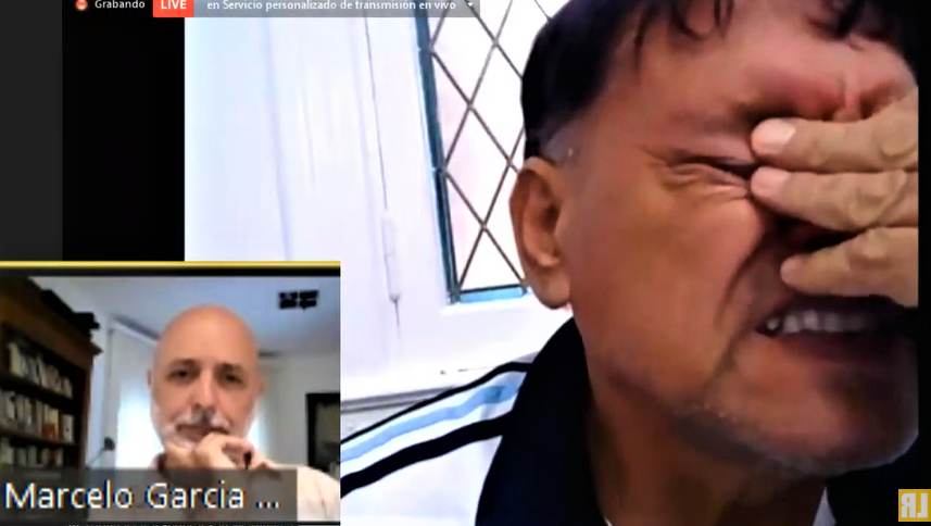 📷 Foto de portada: Francisco Villegas se quiebra al contar que lo torturaron durante la colimba ante la mirada del fiscal García Berro. (Captura de pantalla transmisión de La Retaguardia)