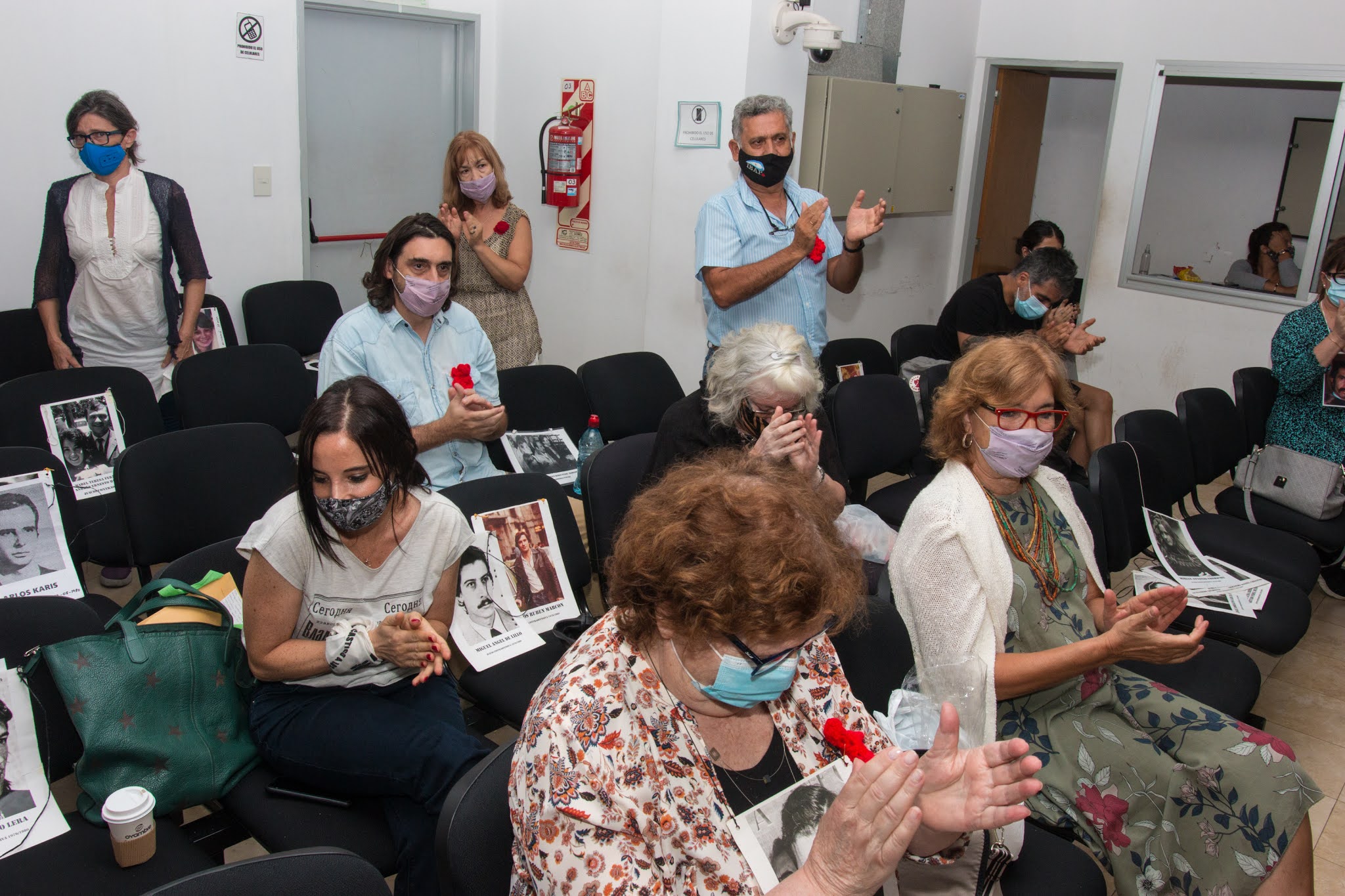 | 👆 En el cierre de la jornada se escucharon los primeros aplausos desde que las audiencias del juicio se reanudaron de manera virtual. El cierre emocionante de Pablo Llonto, con la frase que titula este informe, conmovió a las personas presentes, y también a quienes siguieron la transmisión a través del canal de YouTube de La Retaguardia. 📷 Natalia Bernades/El Diario del Juicio |