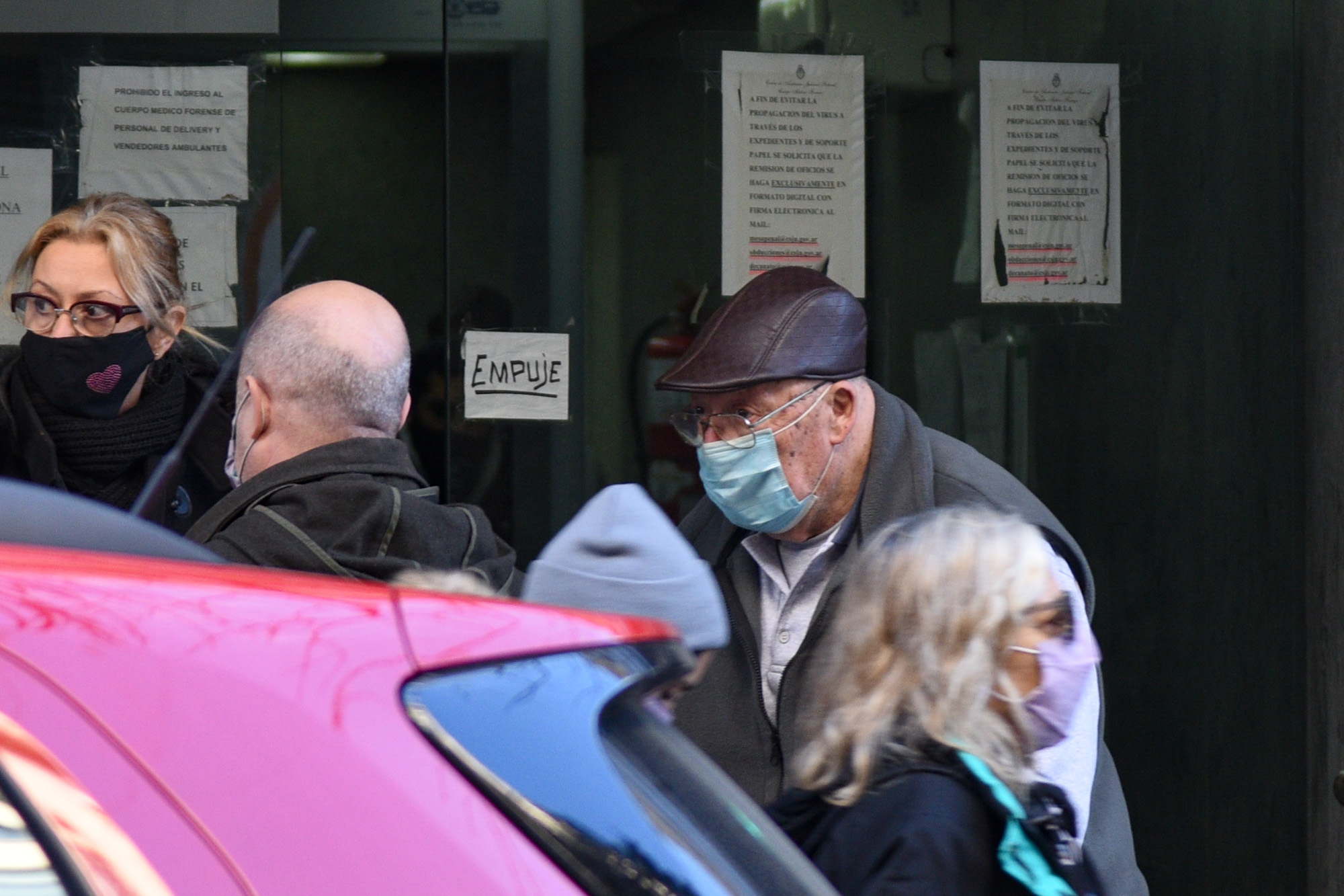 ☝ Eduardo Eleuterio Ascheri también bajó y caminó apenas unos pasos hasta el ingreso. En su caso, las caminatas son habituales por prescripción médica. Durante el juicio vio acotadas sus salidas a vuelta a la manzana de su casa en Belgrano, porque violó dos veces el beneficio. 📷 Gustavo Molfino/El Diario del Juicio |