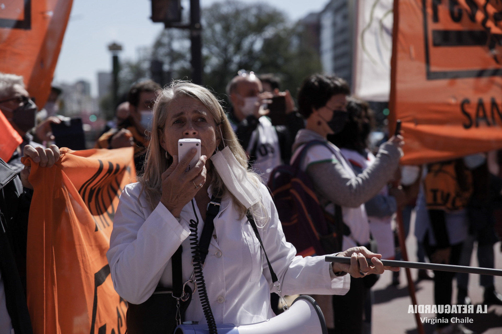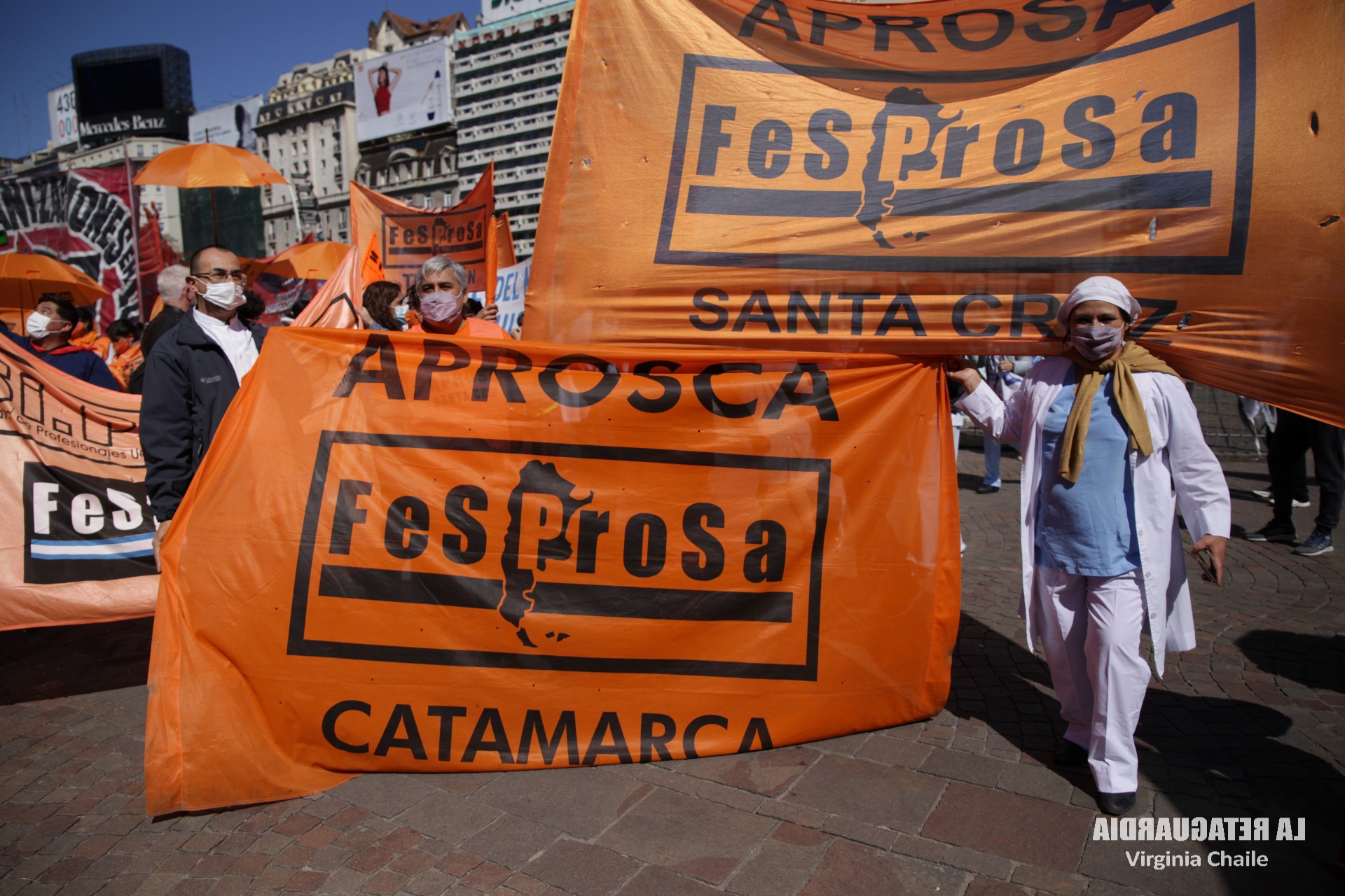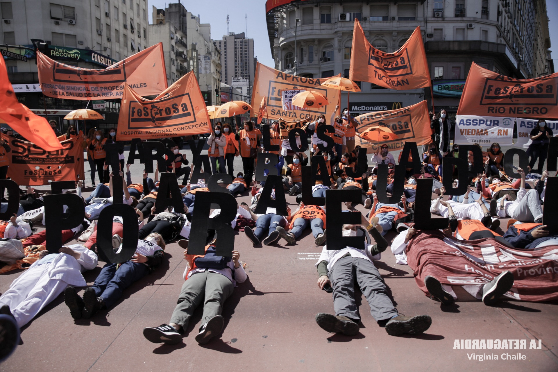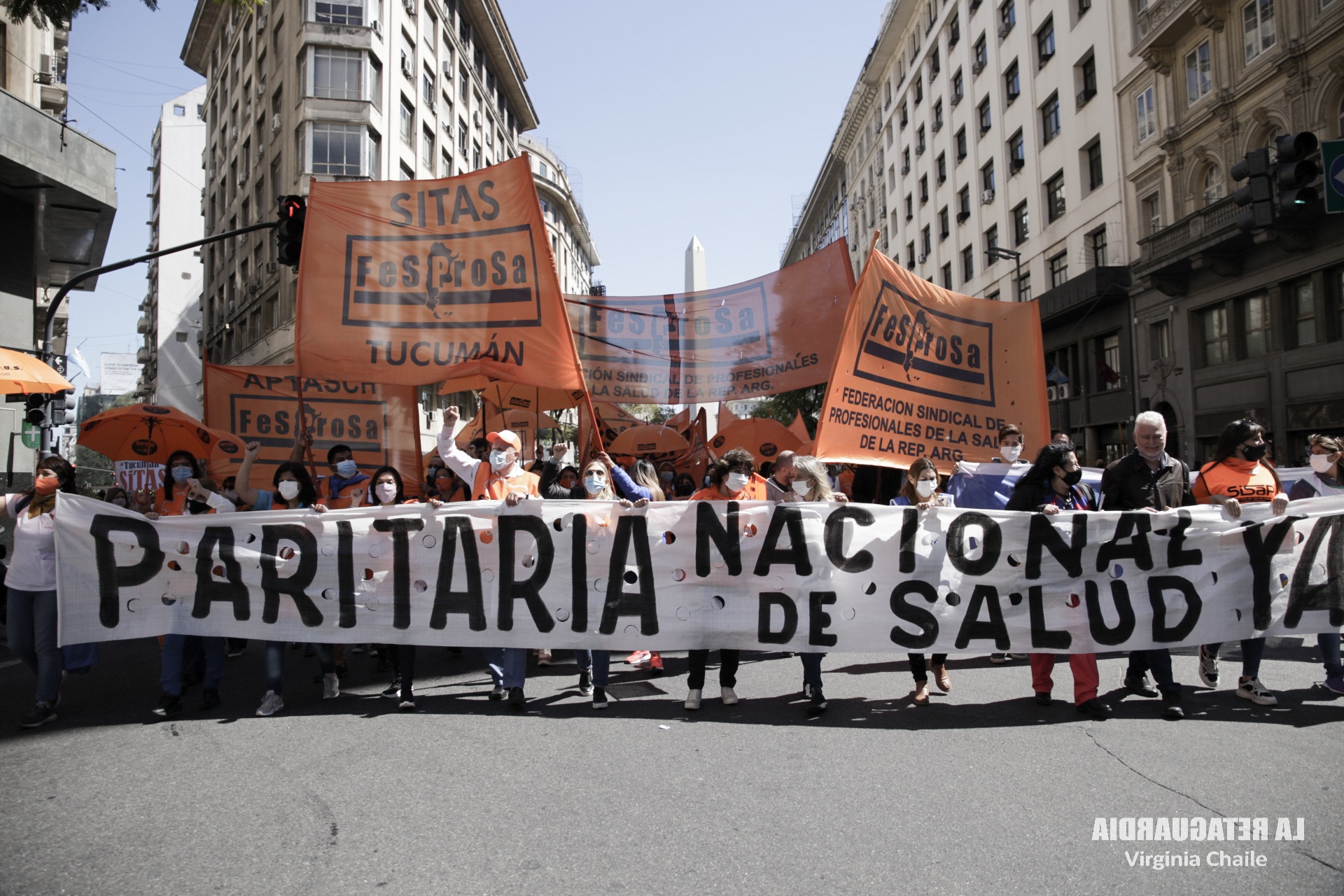 Mientras el jefe de Gabinete, Juan Manzur, y la ministra de Salud, Carla Vizzotti, anunciaban las medidas de flexibilización de los protocolos contra la pandemia ante la baja en los contagios, trabajadoras y trabajadores de la salud se movilizaron por el centro porteño. Desde el obelisco hasta Plaza de Mayo, hicieron notar sus reclamos: apertura de paritarias, contra la precarización y el pluriempleo. La FeSProSa (Federación Sindical de Profesionales de la Salud de la República Argentina) convocó a la jornada con delegaciones de varias provincias. Compartimos un fotoinforme. (Por La Retaguardia)