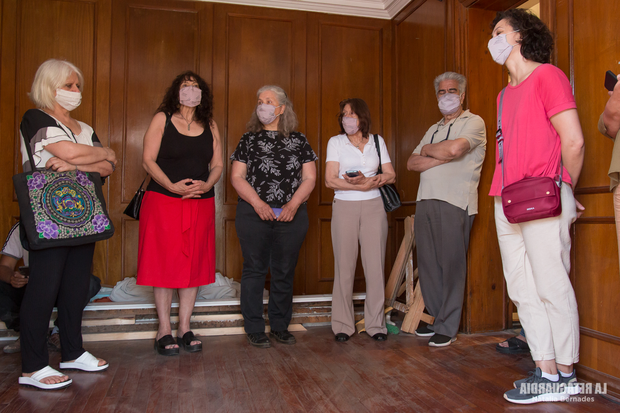 Finalizada la conferencia de prensa, comenzó el recorrido por el centro clandestino, saliendo por el garaje para entrar por la esquina a “El chalet”. Por un paso interno volveríamos al edificio donde estábamos y terminaríamos ahí la recorrida.