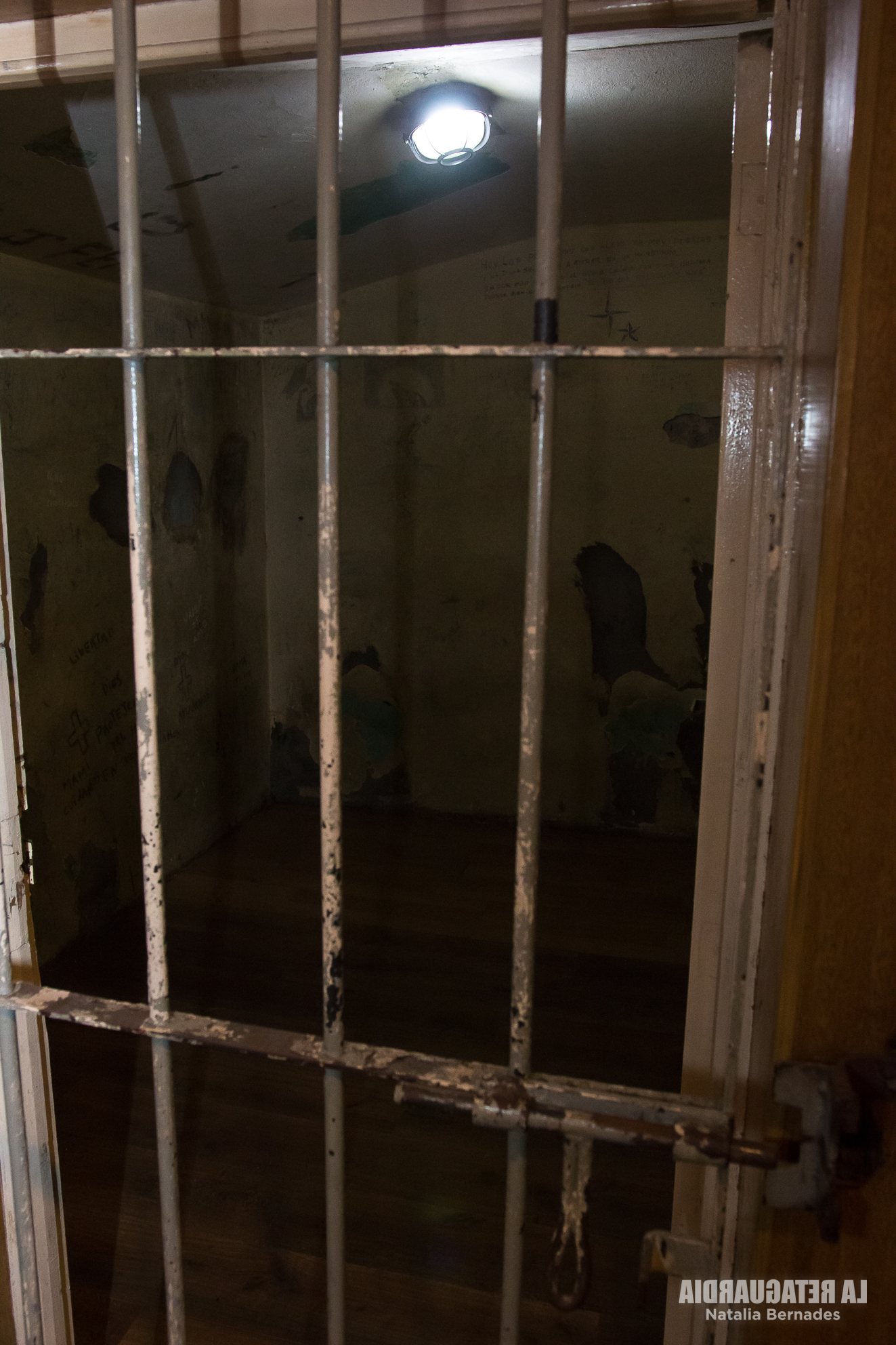 Una celda del Chalet no tiene ventilación, ni agua. Las pintadas en la pared son ruegos a dios y perdones a la madre, con fechas que van entre 2018 y 2020. “La DDI supuestamente no tiene que tener personas detenidas, salvo por averiguación y acá llegó a haber 14 personas, en esa celda”, explicó Samanta Salvatori de la Comisión Provincial por la Memoria, la CPM. Es imposible pensar cómo podían entrar 14 personas en esa celda que señaló. Ni hablar de pensar en permanecer horas o días. “Por ahí estaban una semana en esas condiciones, no tenían dónde dormir, dónde ir al baño”.