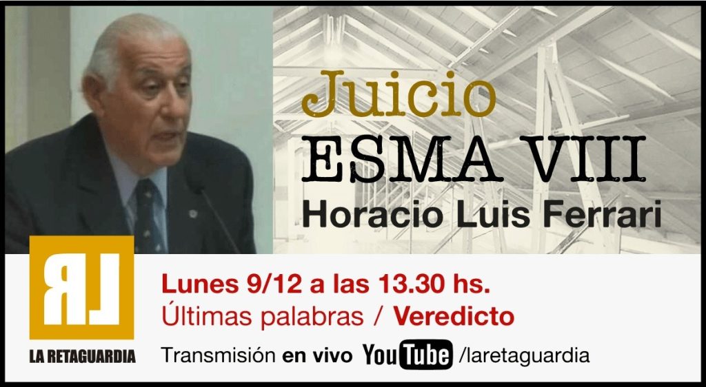 El imputado Horacio Luis Ferrari tendrá la oportunidad de pronunciar sus últimas palabras antes de que la jueza Sabrina Namer, y los jueces Enrique Méndez Signori y Fernando Machado Pelloni den a conocer el veredicto. 💛¿Queres formar parte de la Comunidad de La Retaguardia? Tu aporte nos sostiene https://laretaguardia.com.ar/colabora… 📲 Nuestras redes sociales: – Instagram: … Sigue leyendo Juicio ESMA VIII -Últimas palabras y Veredicto- Lunes 9 de diciembre de 2024 13:30 horas