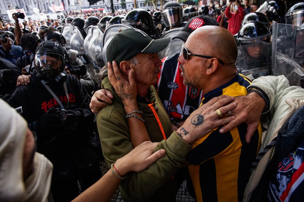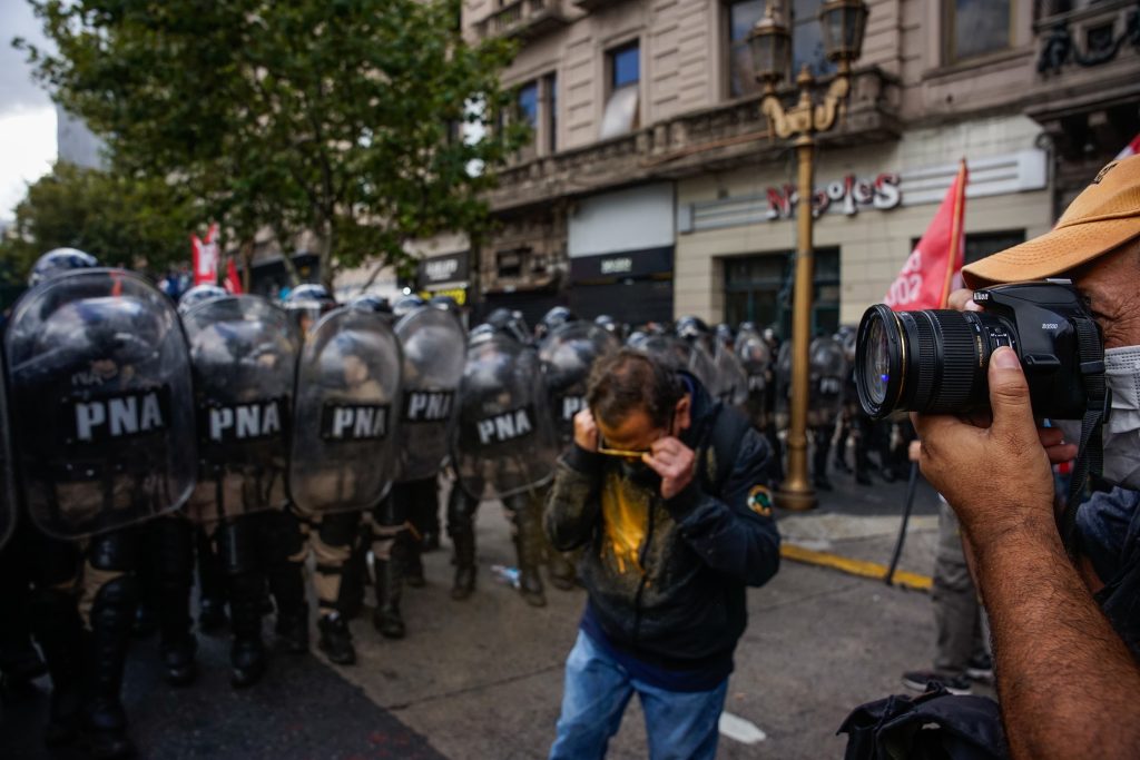 La violencia de todos los miércoles en Congreso se hizo más cruda y extensa durante esta tarde. Las fuerzas federales atacaron a los jubilados/as e hinchas de fútbol que se manifestaban. La represión comenzó antes del horario de convocatoria, que era a las 17.