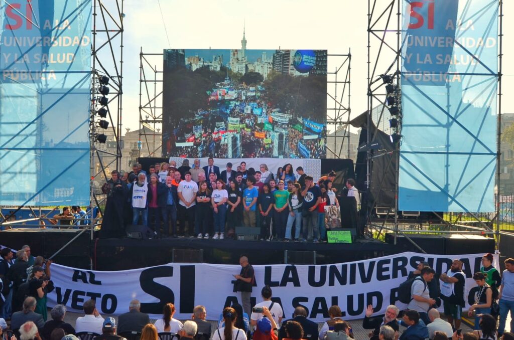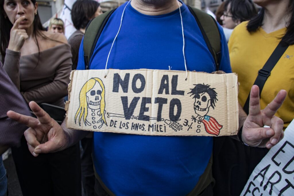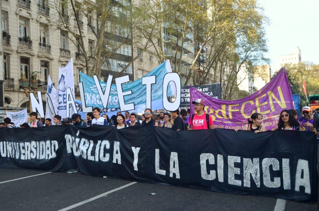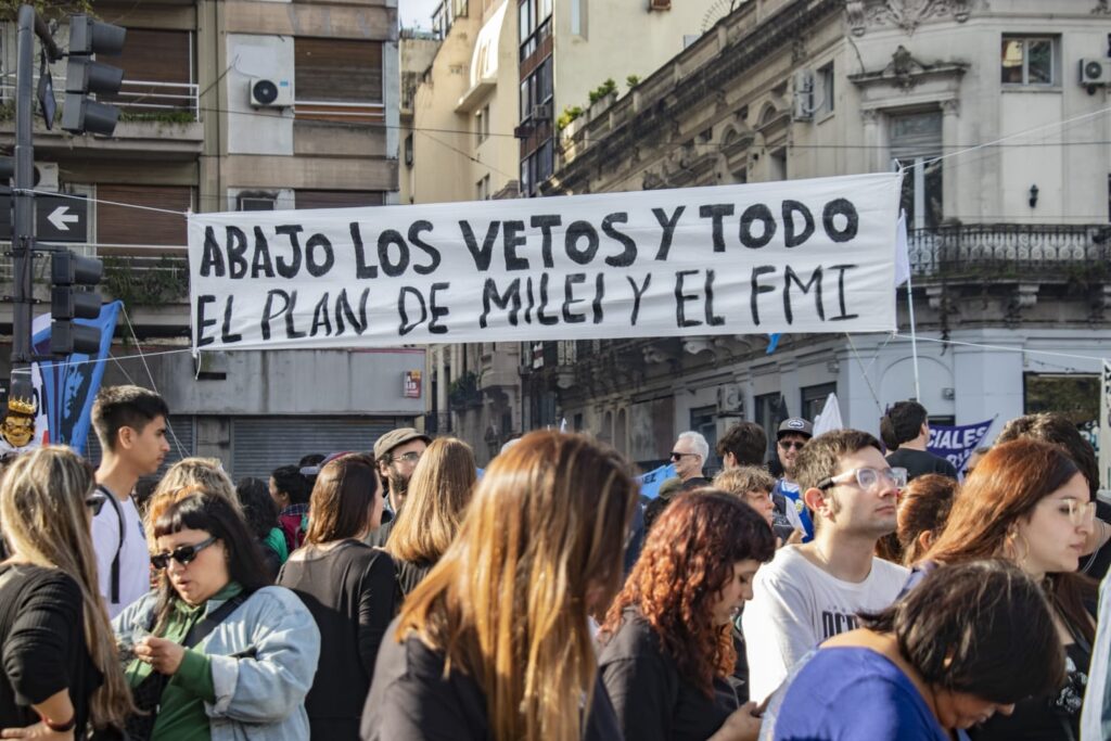 Las inmediaciones del Congreso y la Avenida de Mayo se convirtieron en un mar de manifestantes: estudiantes, docentes, personal universitario y de la salud pública, trabajadoras y trabajadores organizados, partidos políticos y miles de personas se congregaron para exigir a los diputados y diputadas que rechacen los vetos del ejecutivo.