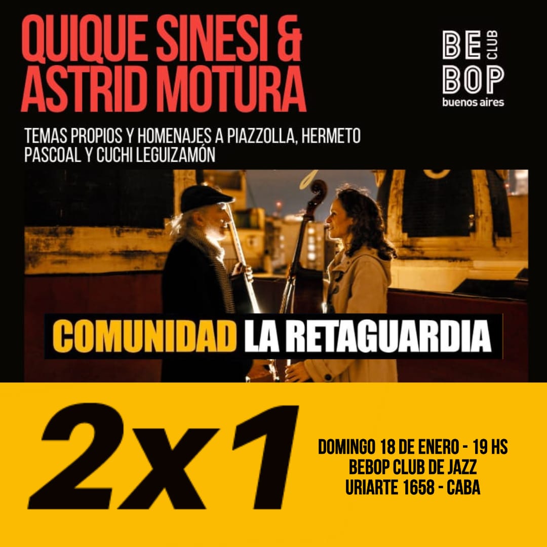 Te invitamos a ver a Quique Sinesi y Astrid Motura en Bebop. Si sos parte de nuestra comunidad, tenés un 2×1 en la entrada.Sinesi es de los guitarristas más virtuosos del país. Motura aporta dulzura y talento con su cello. Juntos grabaron el disco Magia, que presentan en esta ocasión, junto a temas de Piazzolla, […]