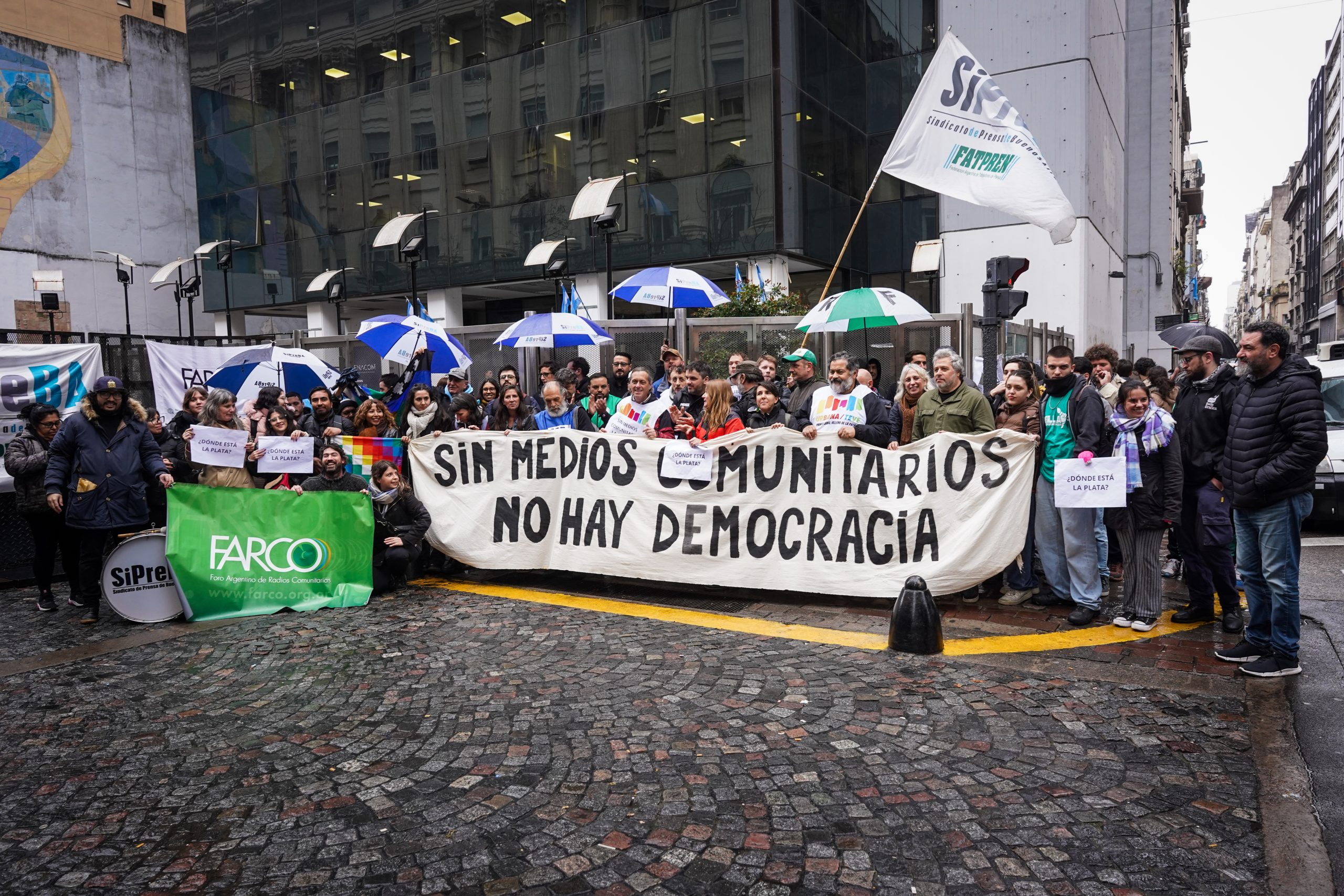 Diferentes espacios de comunicación repudiaron la censura y la represión contra trabajadores y trabajadoras de prensa. También exigieron que el organismo cumpla con la ley. Actualmente, el ENACOM está intervenido y paralizó los fondos de fomento. Además, mantiene una deuda millonaria por concursos asignados que el actual gobierno no saldó. Fotos: Antú Divito Trejo